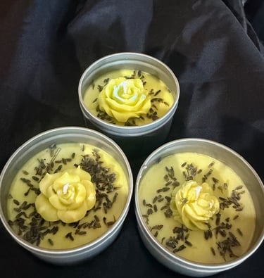 Each candle is hand-poured with care and infused with prayer, intention, and the belief that light always pushes back the darkness.