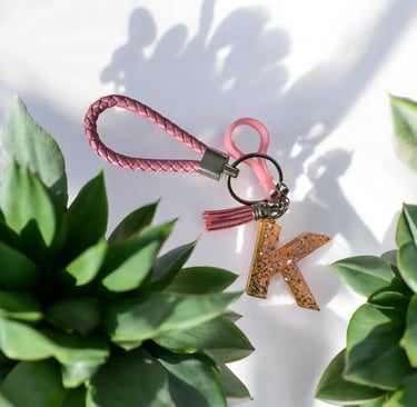 Pink Braided Keychain with Letter K Charm