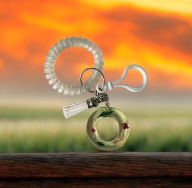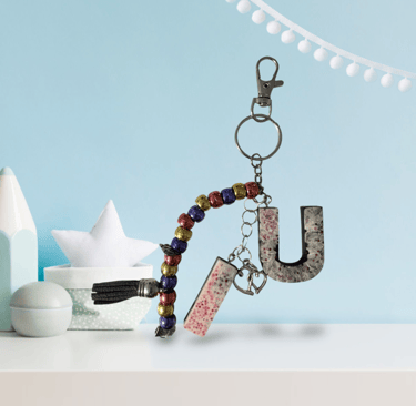 Floral Keychain with Spiral Wristband and Letter O