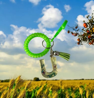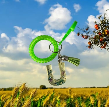 Green Spiral Wrist Keychain with Decorative Letter U