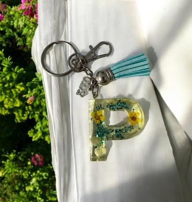 Letter P Floral Keychain