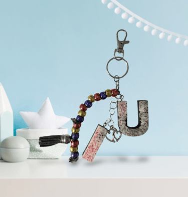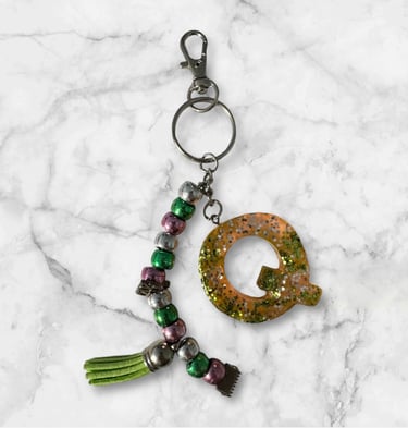 Keychain with Beads and Initial Q